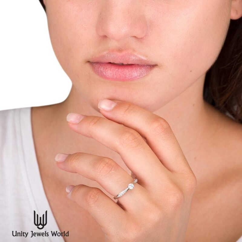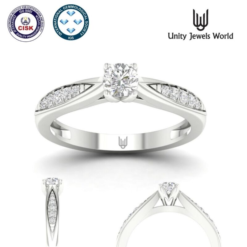 | Kő | Központi kő: briliáns csiszolású természetes gyémánt (0,25 ct), Oldalkövek: briliáns csiszolású természetes gyémánt (0,08 ct total) |